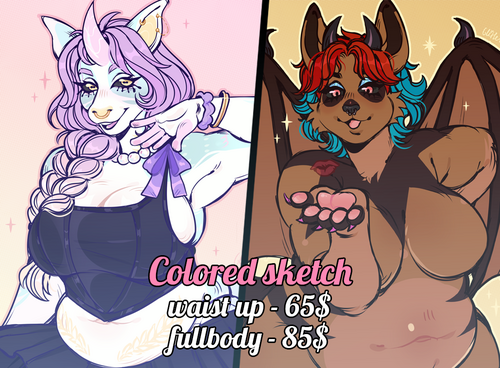 Keep the convos civil please.ADDITIONAL PAYMENTThere may be additional payment if you're requesting more items, have complex designs, request backgrounds etc. Each payment is discussed individually. No visual reference = additional costs. I don’t work without visual references for MOST commissions (no visual references: no images of character).CORRECTIONSI'm okay with fixing mistakes after sending you each stage of the artwork, but I'm not completely fine with reworking previously accepted sketch after working with lineart - it may lead to additional payments. More than 3 reworks might be payable. To avoid those situations it's best to explain your idea and provide visual references, even stickman figure sketch for the pose helps a lot!REFUNDS:No refunds after sketch/lines stage. If I haven't started the commission I’ll refund you fully. I know things come up but when buying a commission make sure it’s not your bills/living expenses budget and you have loose/saved money to spend on art. Art is my full time job and I plan my expenses too, please understand that.You know what you're paying for - please take a look at my gallery before asking for a commission, I won't change for you my style, do a thinner lineart or change the way I draw muzzles, lashes and my coloring technique.